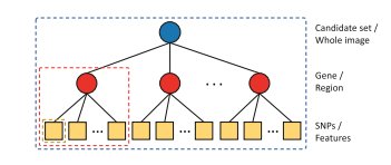 We consider the problem of finding the sparse associations between two sources of data, for example the sparse association between genetic variations (e.g., single nucleotide polymorphisms, SNPs) and phenotypical features (e.g., magnetic resonance imaging, MRI) in the study of Alzheimer’s disease (AD). Despite the success of Canonical Correlation Analysis (CCA) based its sparse variants in a number of applications, they usually neglect the underlying natural tree structures SNPs and MRI data. Specifically, the whole candidate set, genes, SNPs of gene form a path of tree structure in SNPs data, and the whole image, regions of image, features of region form a path of tree structure in the MRI data. In order to model the tree structure of features in both sources of data, in this paper, we propose a Tree-guided Sparse Canonical Correlation Analysis (TSCCA). The proposed model equips CCA with special mixed-norm regularization terms in order to model the underlying multilevel tree structures among both the inputs and outputs. To solve the resulted complicated optimization problem, we introduce an efficient iterative algorithm for TSCCA by rewriting tree-structured regularization into the common form of overlapping group lasso. To evaluate the proposed model, we have designed the simulation study and real world study respectively on Alzheimer’s disease. Experimental results on the simulation study have shown that the proposed method outperforms CCA with Lasso and group Lasso. The real world study on Alzheimer’s disease has shown that our model can find biologically meaningful associations between SNPs and MRI features.